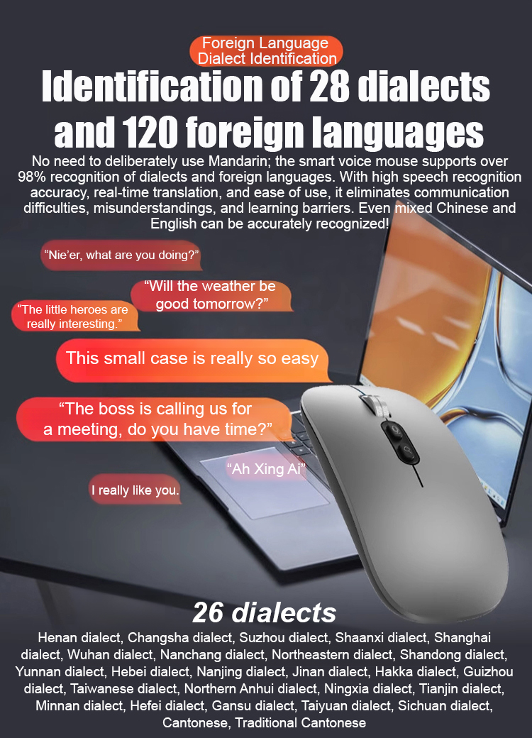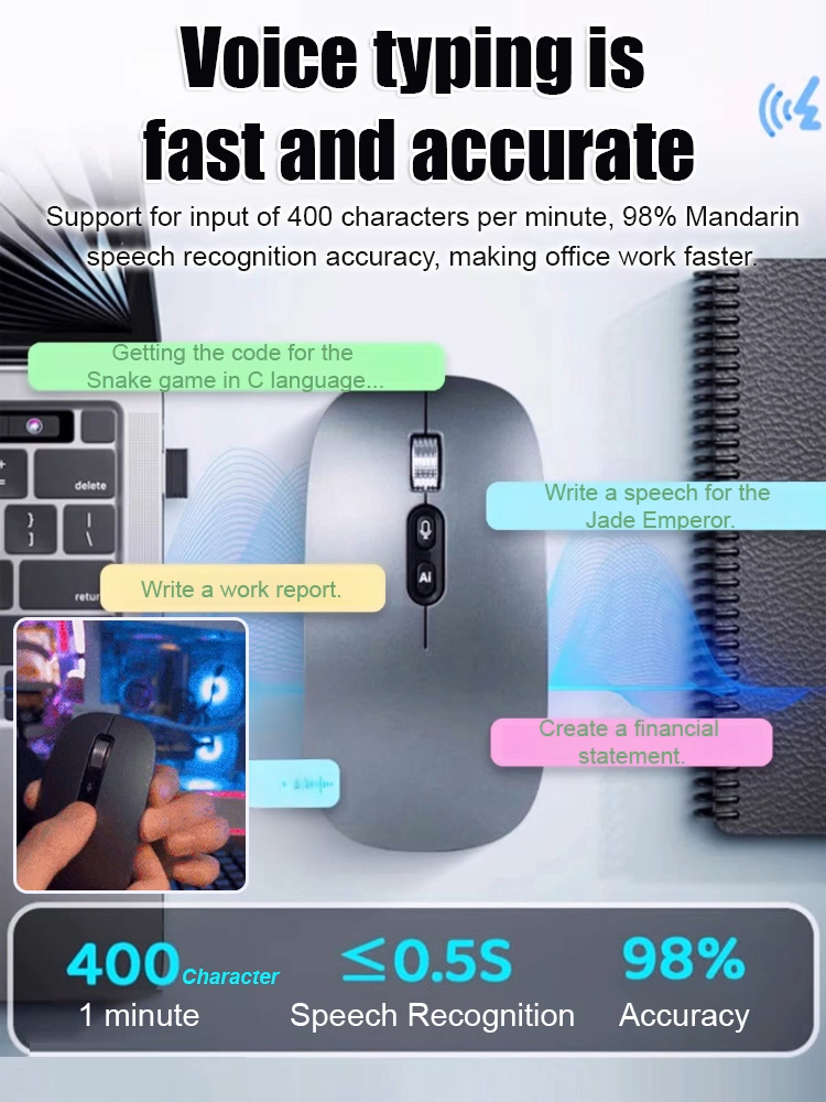 💛Smart Voice Translation and Recognition Wireless Tri-Mode Mouse💛Real-time translation of 117 languages🔥Over 50,000 units sold in North America🔥AI intelligent chip recognition🌹