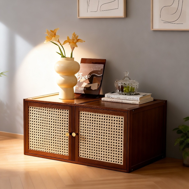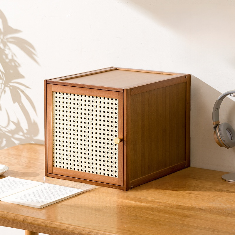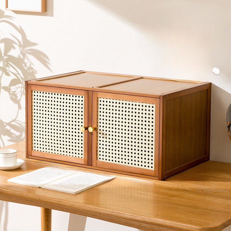 Multi-functional Solid Wood Lattice Cabinet Storage Bookshelf Drawer Floor-standing for Home