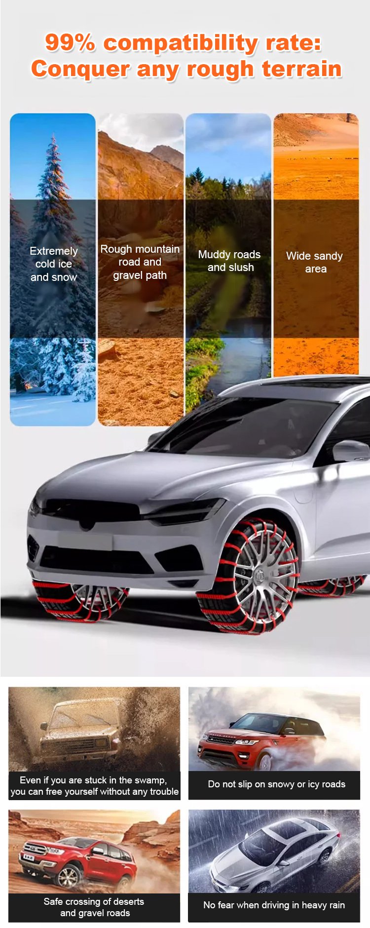 🔥【Install in 2 Mins】Universal Anti-Skid Snow Chains ❄️ | No Jack Needed | Bite Through Black Ice